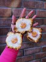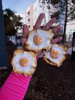 These fried egg wall hangings are made to order and handmade by me from polymer clay, shaded with soft pastels, then sealed with a glossy resin coat for shine and protection.